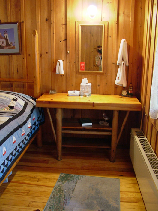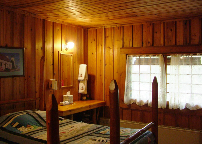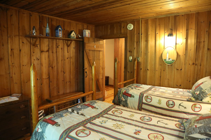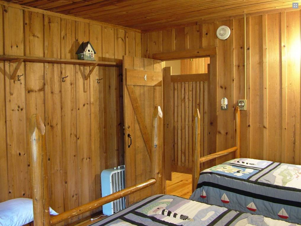 Two single Habitant beds; dresser; rocker; free WiFi, electric heat controlled by thermostat. The room is on the front-side of the Lodge and is located across from the bathrooms.